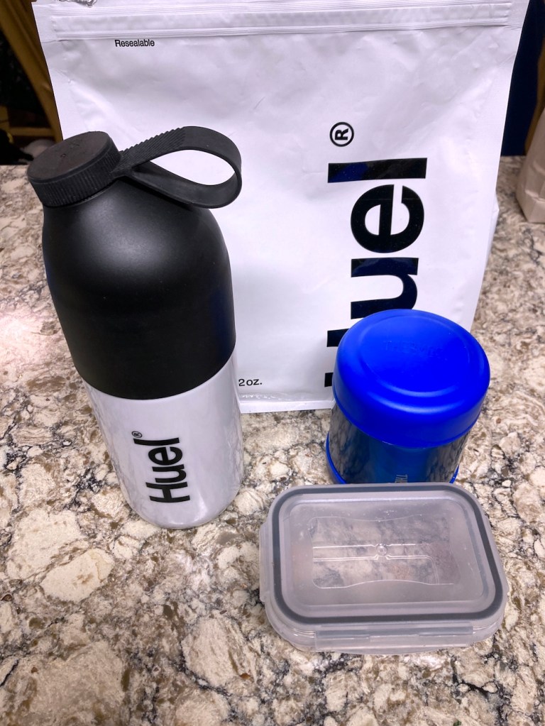 I shook this up while my friends bought food. This lot is chocolate flavored and easy to get down, although less appetizing than “real food.” My bottle of Huel definitely did the job though, for just $2, which is satisfying as well.