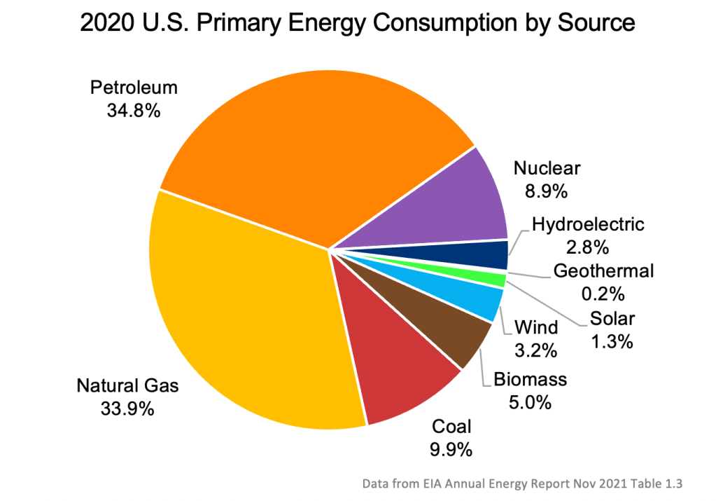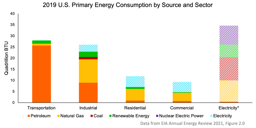 - Transportation is overwhelmingly petroleum, as you’d expect.