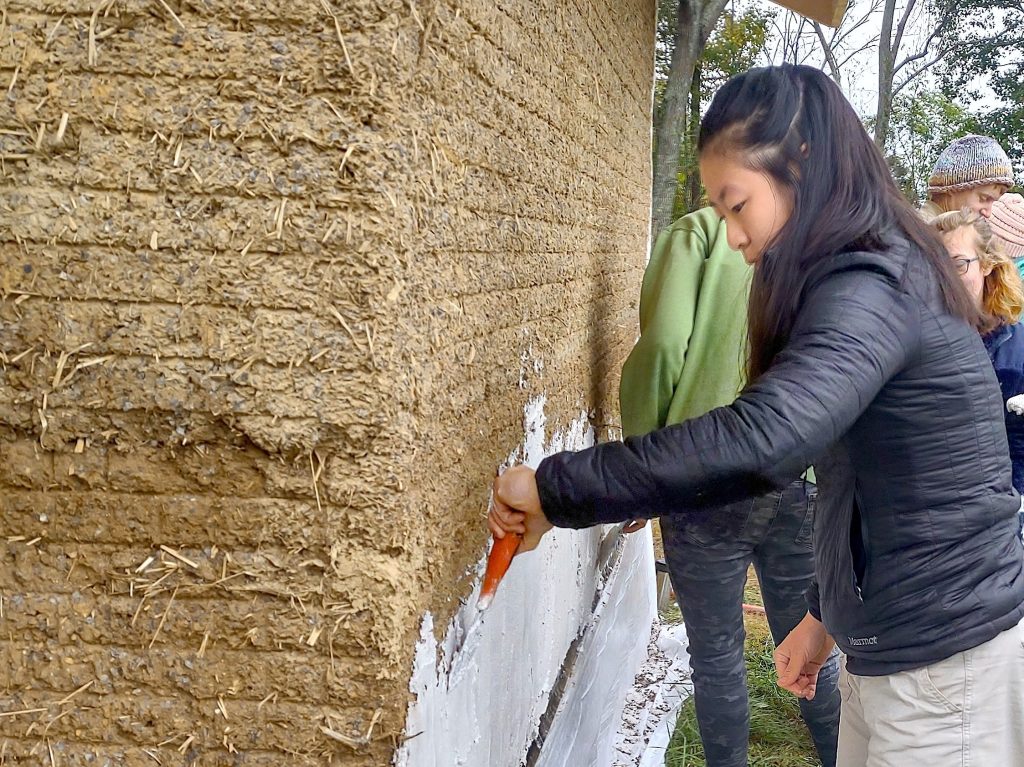 I don’t think that way, as I just explained. I want to learn more about how we can live sustainably, so that I can better help us get there. I surveyed my little knowledge to figure out where to start. Food was the clearest to me: I’d seen examples of sustainability-forward agriculture, and regularly spend time working on an organic farm. Water was less clear, and I started looking into how wells are made and different methods of water purification, like with charcoal. Housing was the biggest mystery to me. I knew very little about how buildings were made, past or present. So I went down a rabbit hole of researching sustainable building, also known as natural building.