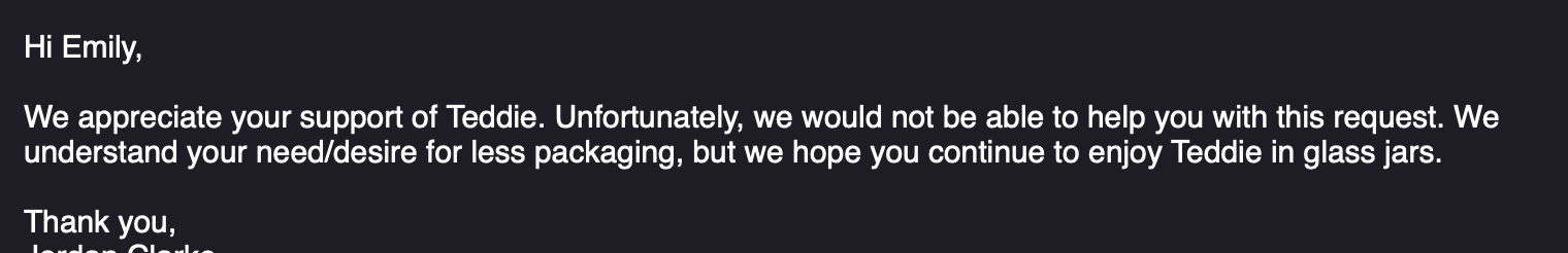 Teddie is a peanut butter company that manufactures peanut butter right here in Everett, MA. In one of my many “why not?” moments, I emailed Teddie customer service to ask if they’d consider selling their PB in bulk. They said no.