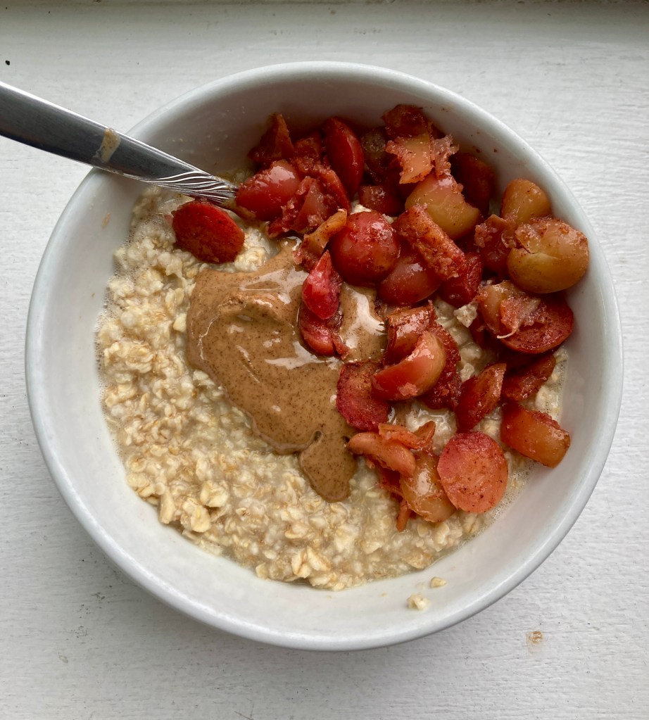 Riding the sour wave of success, I started another vinegar: crabapple scrap vinegar. There are tons of crabapple trees in this area, as they are planted pretty often. If you haven’t seen them, just keep an eye out for trees with roughly cherry-sized apples on them in autumn. I harvested a bowl of crabapples from the same trees I did last year, which were incredibly heavily laden with fruit, cored each little one, and threw them in the oven alongside my housemate’s bread to make baked crabapples. The baked crabapples were delicious. Although they’re much less sweet and more sour than regular apples, crabapples have much more intense apple flavor. When cooked, they sweeten slightly and soften, like normal apples. You can make an amazing crabapple jam, crabapple pie, or mix it in oatmeal with spices and nuts as I did.